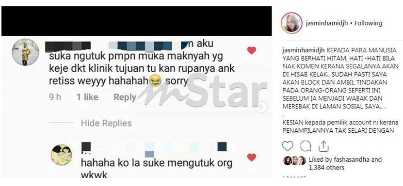 Hina Anak Di Instagram Jasmin Hamid Saman 15 Netizen Tehpanas