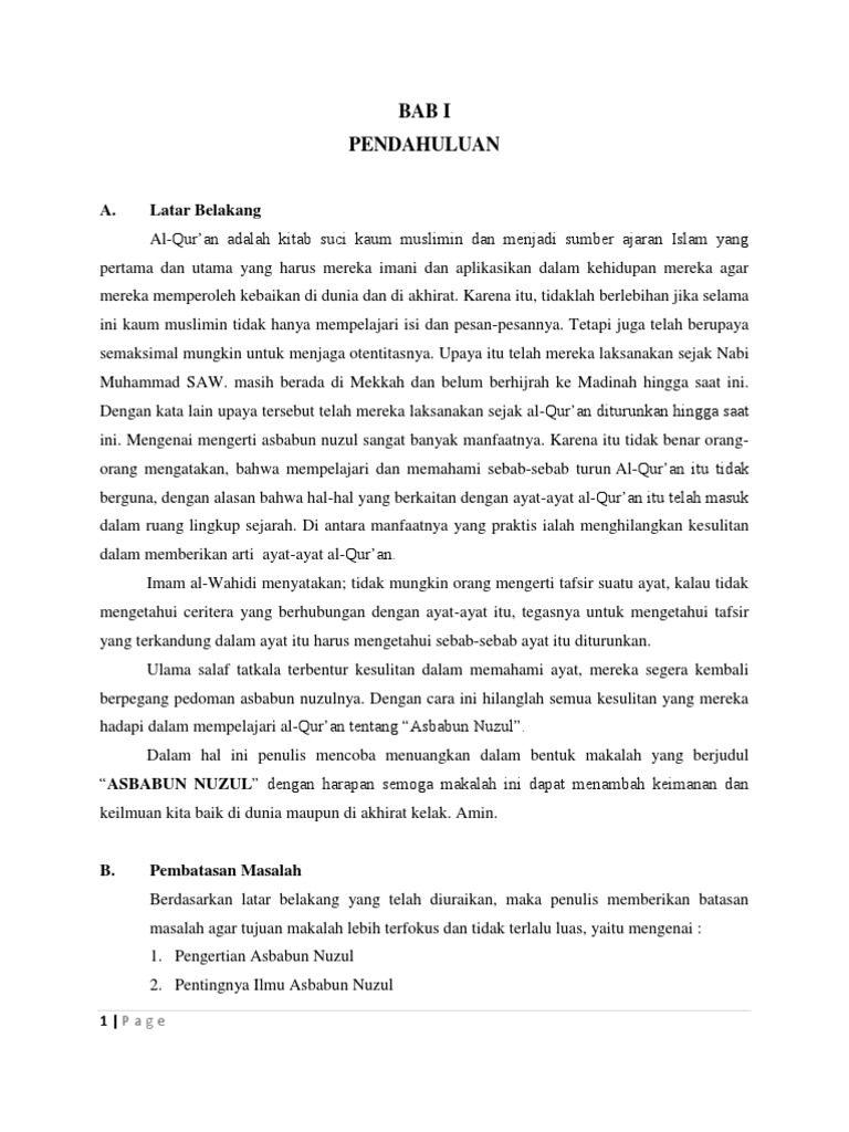 Doc Asbabun Nuzul Bab I Pendahuluan Dewi Nur Yastuti Academia Edu