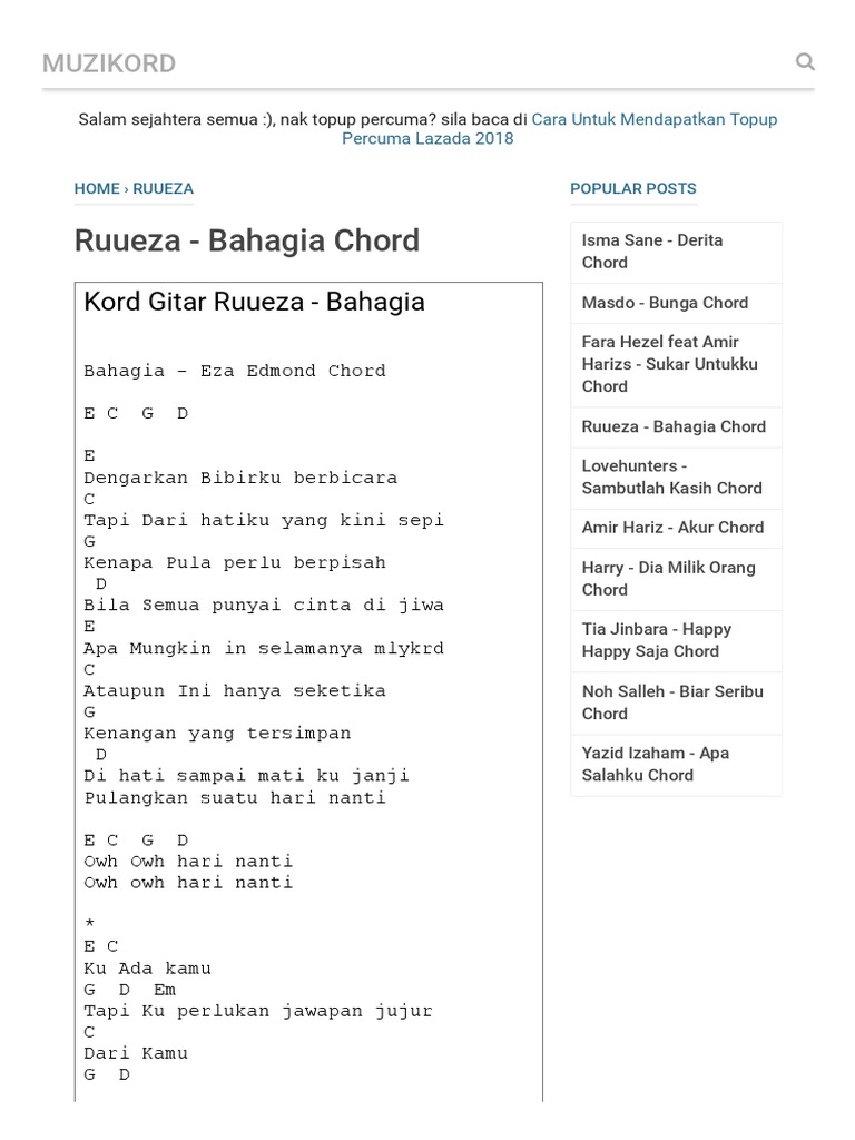 Kord Gitar Ruueza Bahagia Chord Muzikord