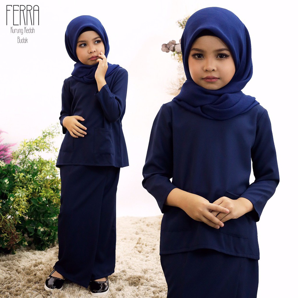 Baju Kurung Ferra Budak Raya Sedondon Navy Blue Shopee Malaysia