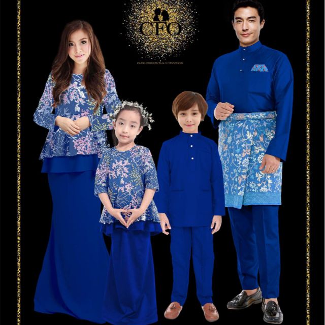 Set Sedondon Eksklusif Keluarga Raya 2019 Navy Blue Shopee Malaysia