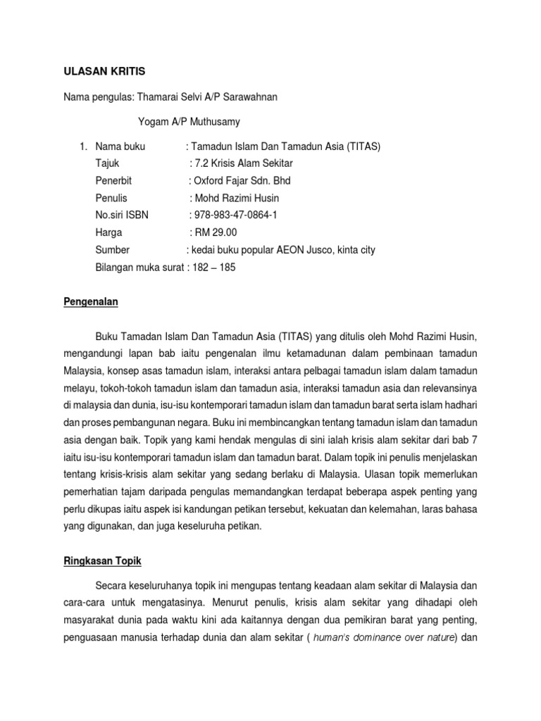 Tugasan Ulasan Jurnal Titas Tamadun Islam Dan Tamadun Asia Studocu