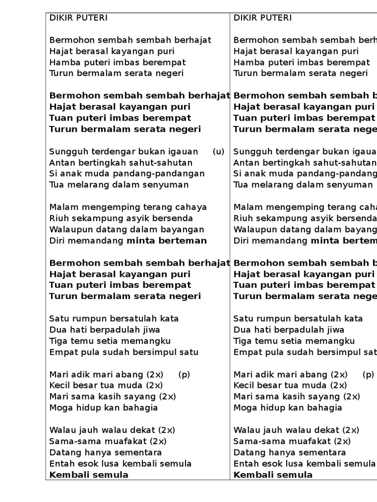 Dikir Puteri Lirik