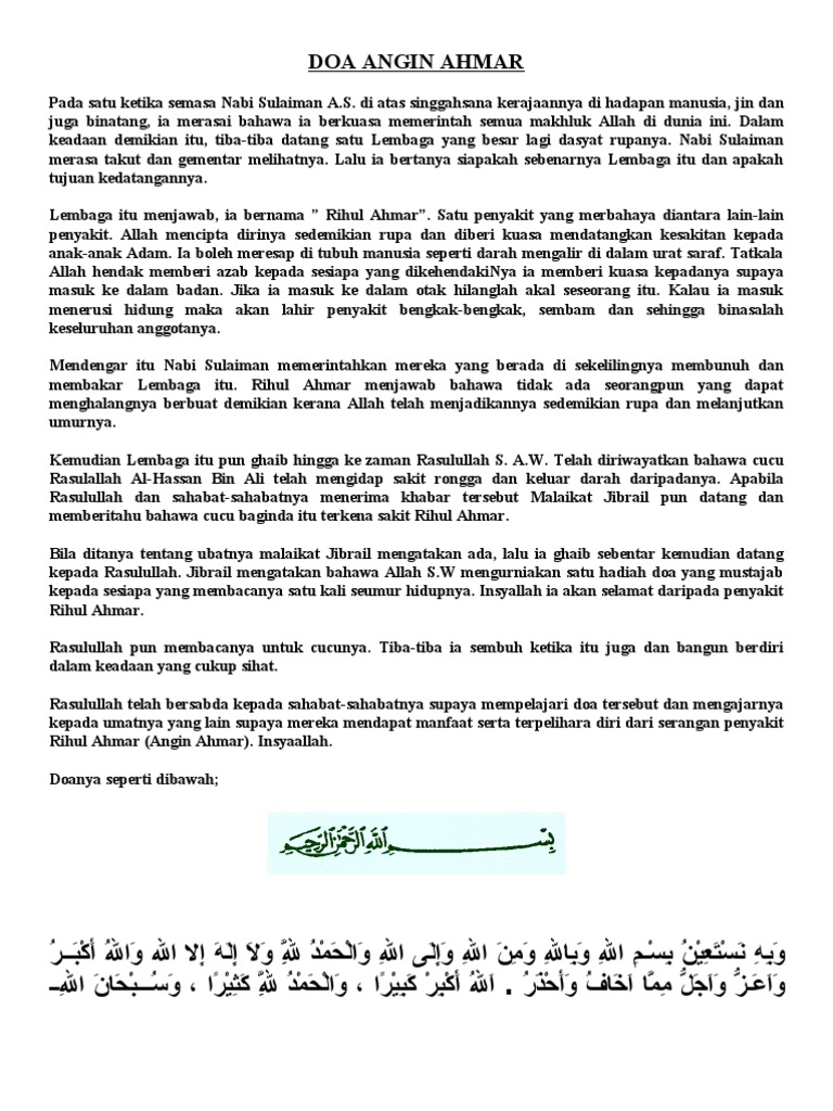 Doa Menghindari Penyakit Angin Ahmar Doa Wise Allah