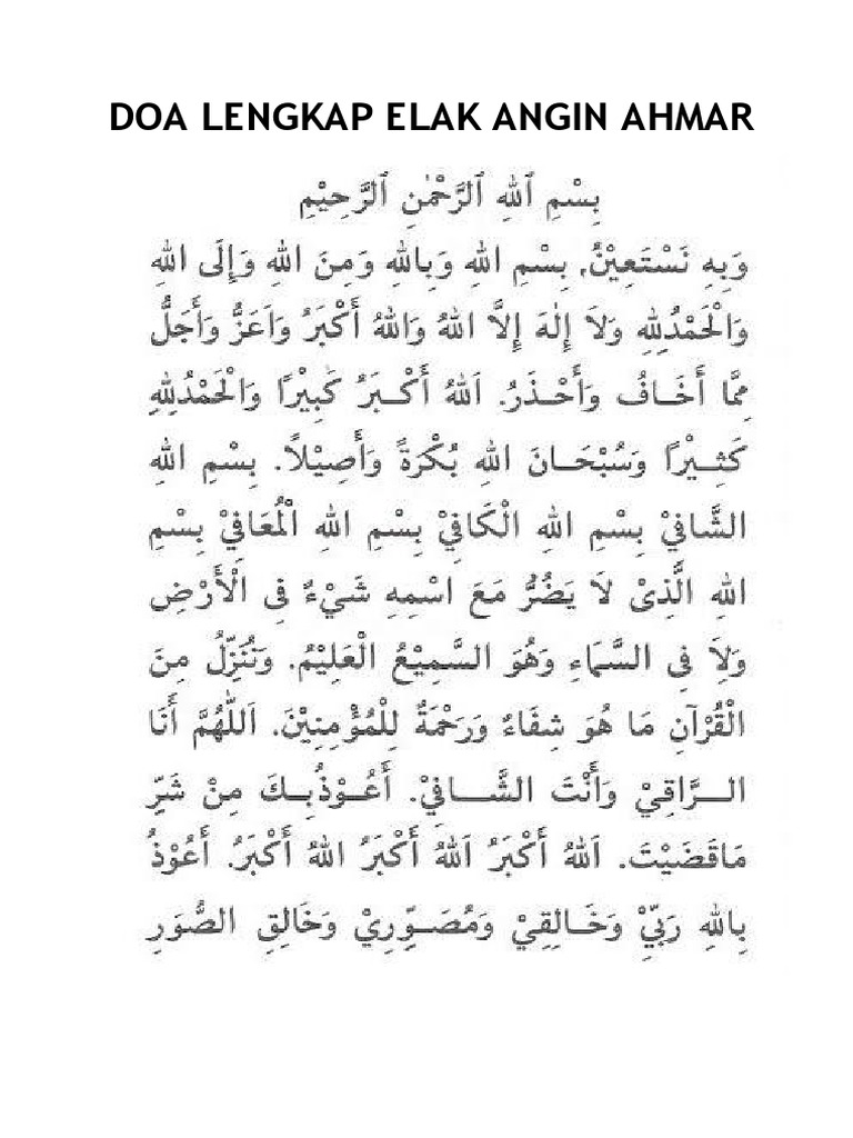 Doa Lengkap Elak Angin Ahmar