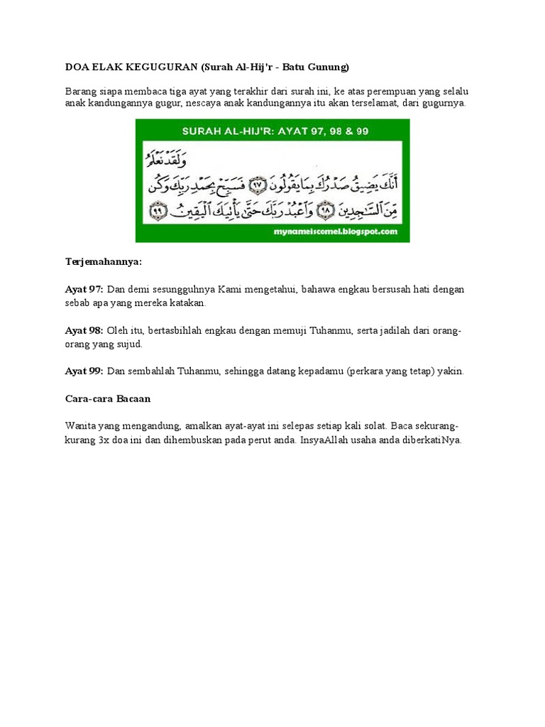 Pesan Bonda Doa Elak Keguguran Surah Al Hij R Batu
