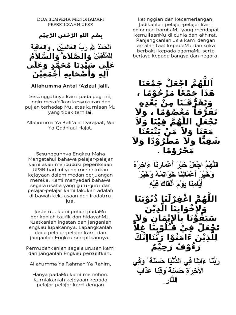 37753640 Doa Sempena Menghadapi Peperiksaan Upsr