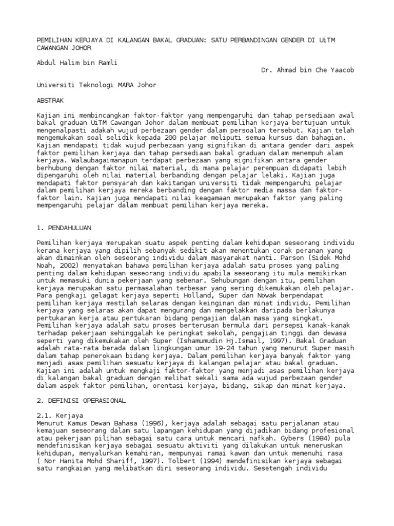 Pdf Faktor Pemilihan Kerjaya Di Kalangan Pelajar Universiti