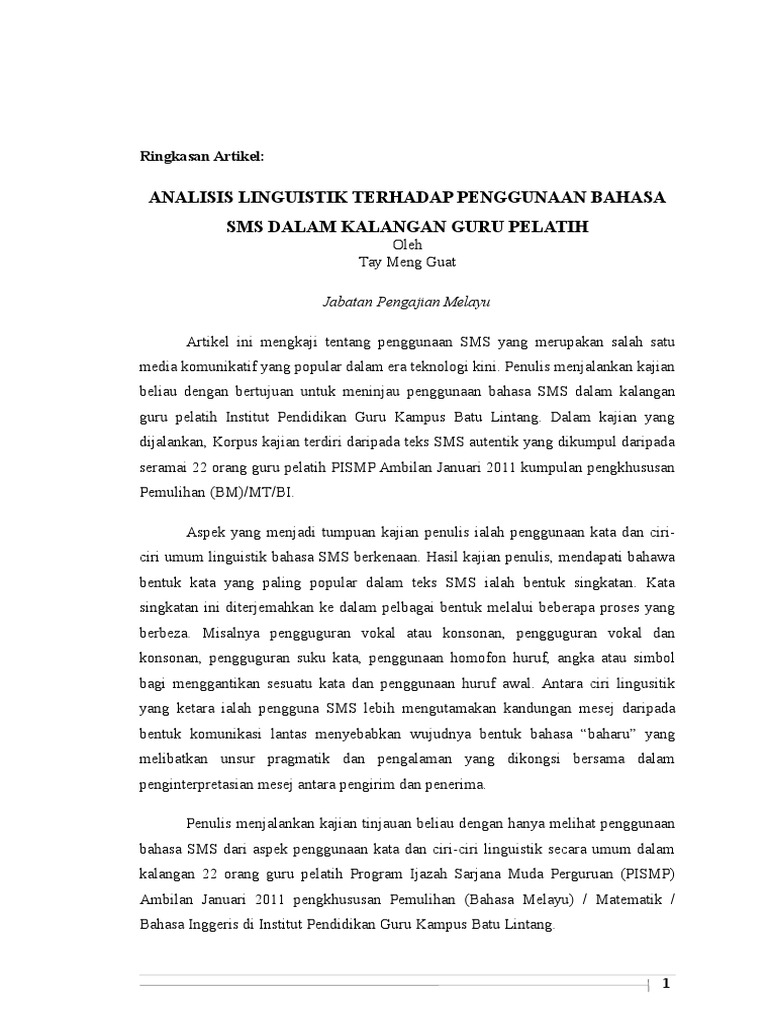 Contoh Artikel Ringkas Contoh Artikel Bahasa Melayu