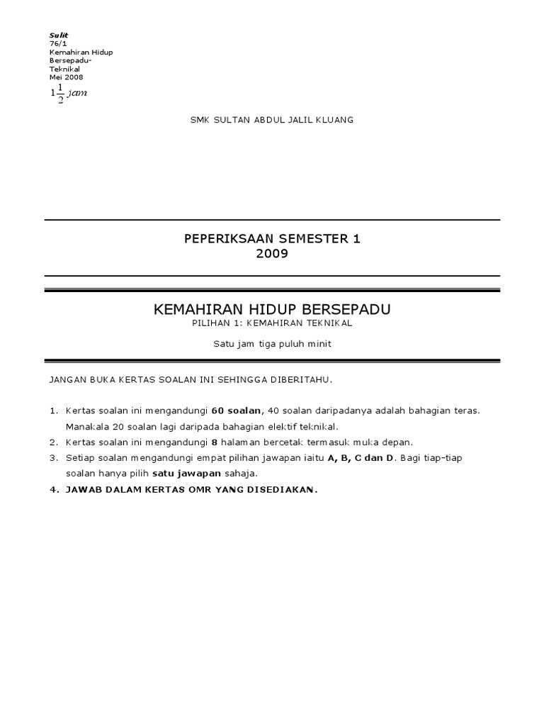 Kemahiran Hidup Bersepadu Peperiksaan Semester 1 2009