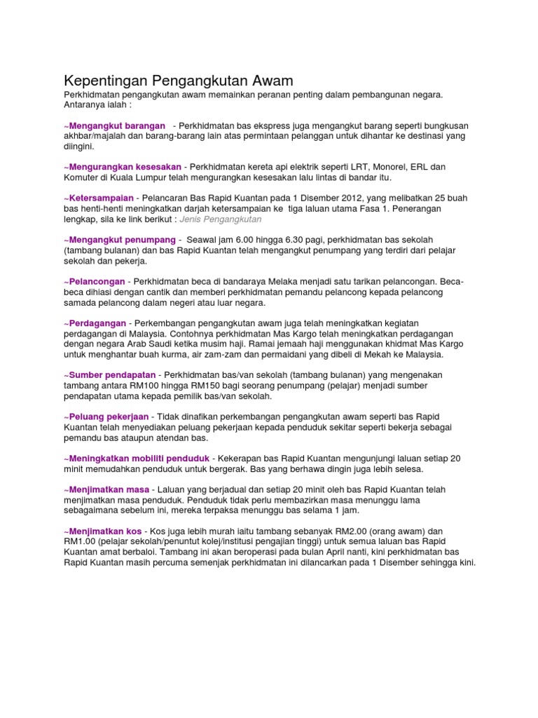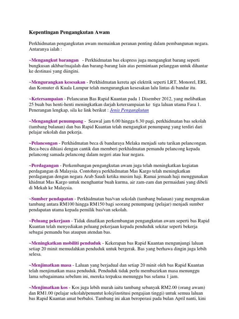 Kepentingan Pengangkutan Awam Di