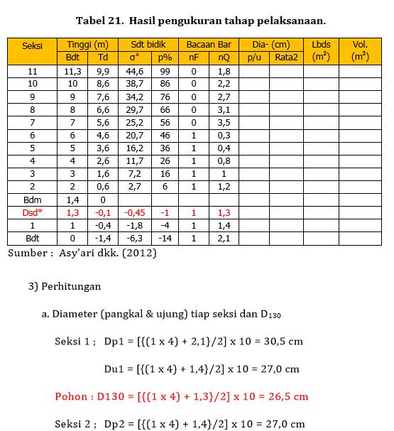 Pengukuran Panjang Batang Per Seksi Our Akuntansi