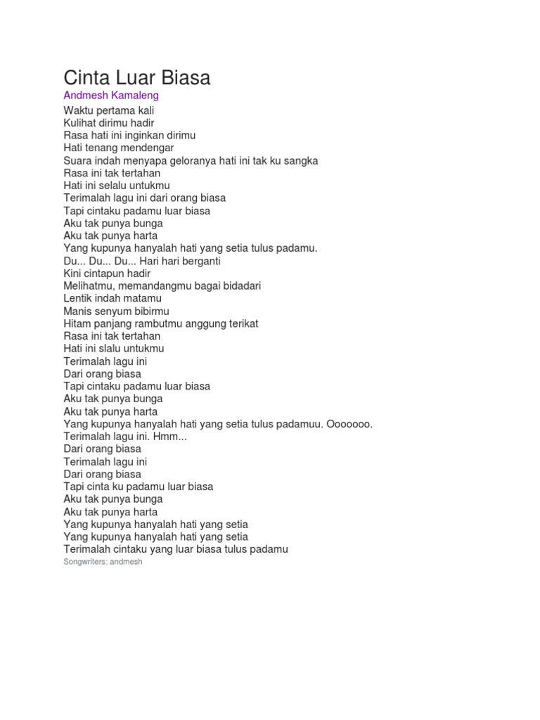 Lirik Lagu Cinta Luar Biasa Andmesh Kamaleng Wattpad