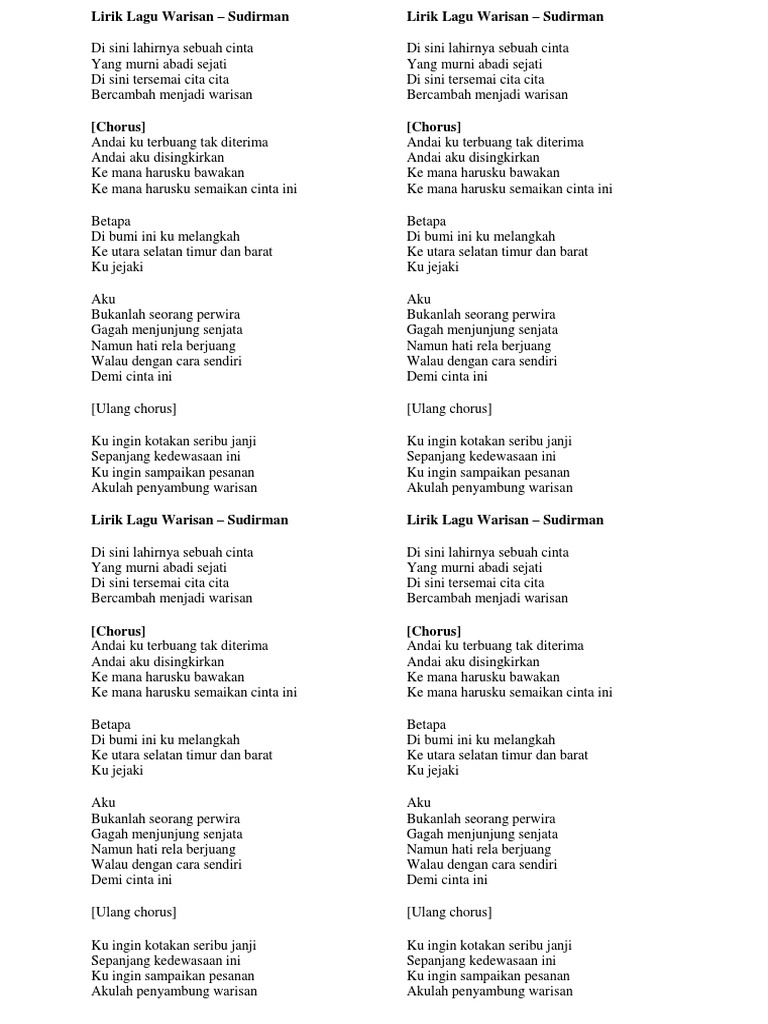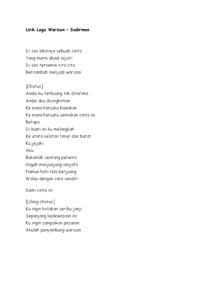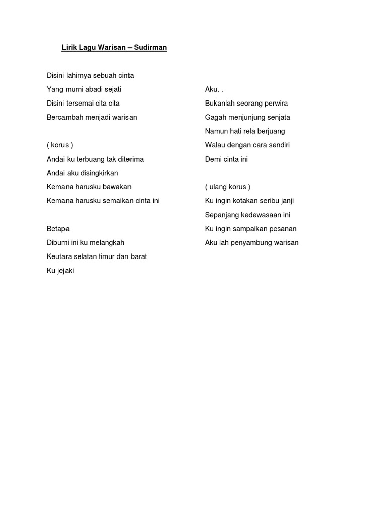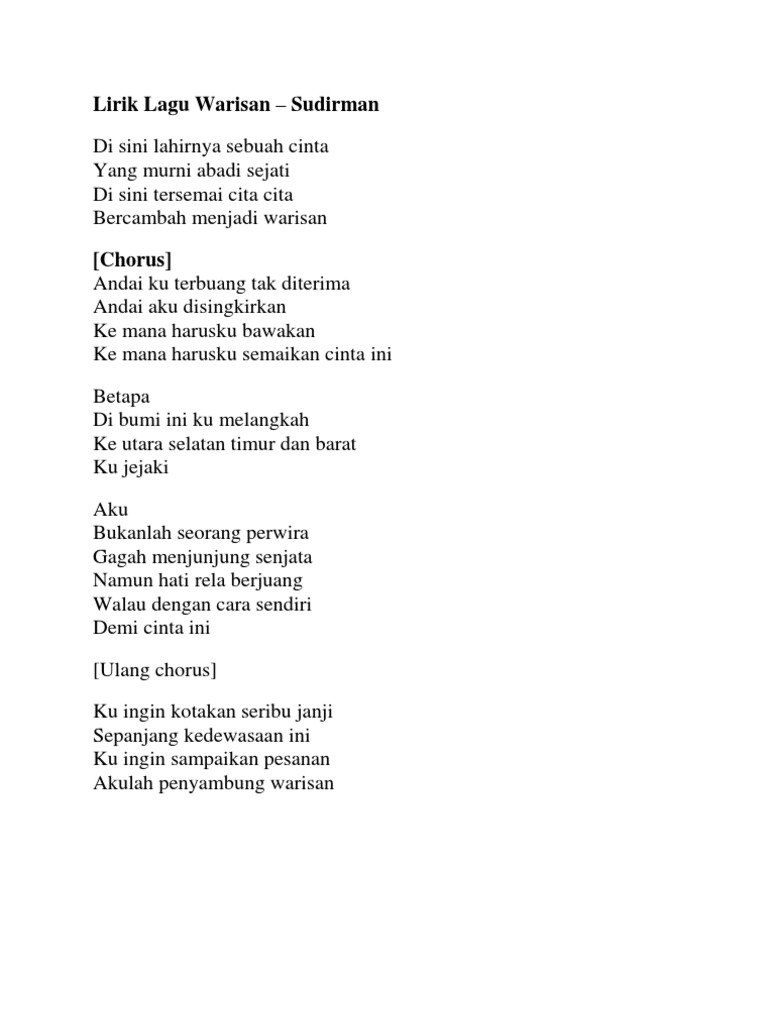 Lirik Lagu Warisan Sudirman Doc Doc Document