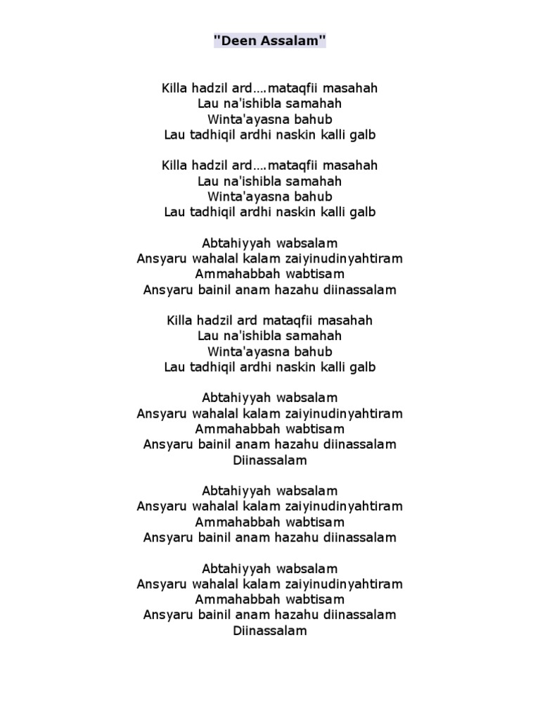 Doc Lirik Lagu Abtahiya Wassalam Deen Assalam Bayu Ariwibowo Academia Edu