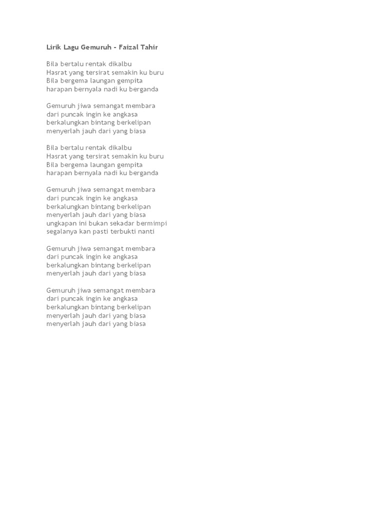 Faizal Tahir Choir Docx Faizal Tahir Gemuruh Bila Bertalu Rentak Di Kalbu Hasrat Yang Tersirat Semakin Ku Buru