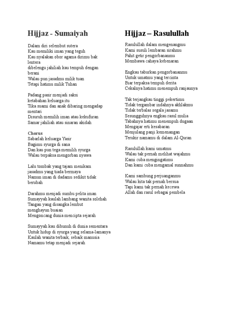Sumayyah Hijjaz Lirik Lagu Youtube