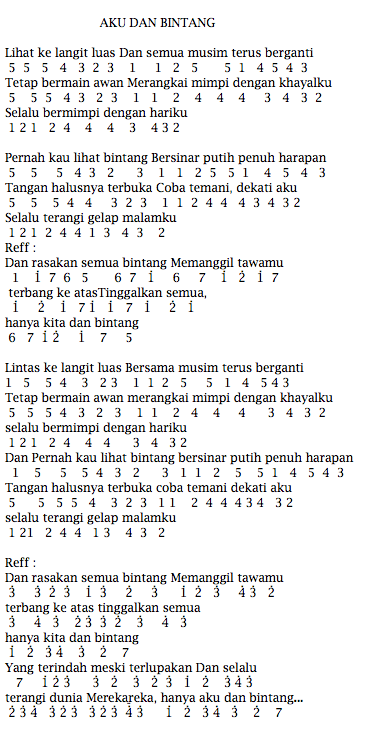 Not Angka Pianika Lagu Peterpan Aku Dan Bintang Not Angka Lagu