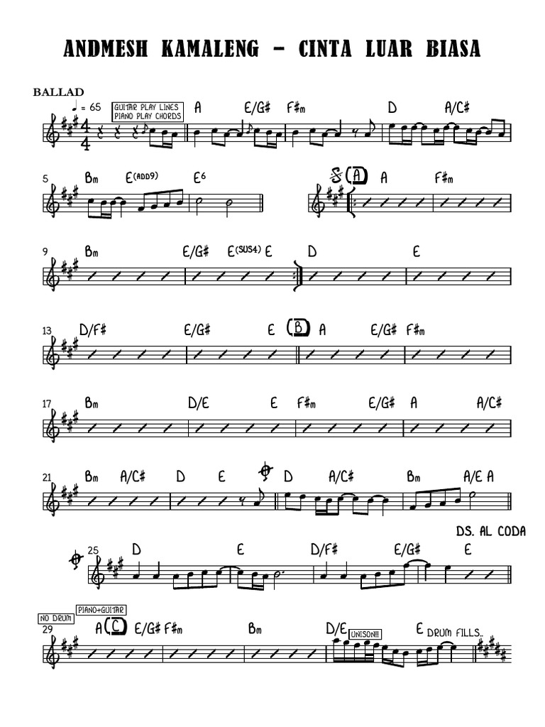 Not Angka Lagu Andmesh Cinta Luar Biasa Not Angka