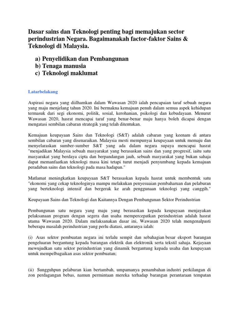 Dasar Sains Dan Teknologi Penting Bagi Memajukan Sector An Negara