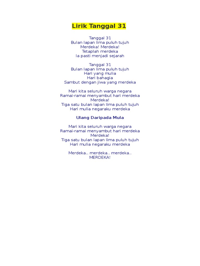 Lirik Lagu Tanggal 31 Docx Lirik Lagu Tanggal 31 Tanggal 31